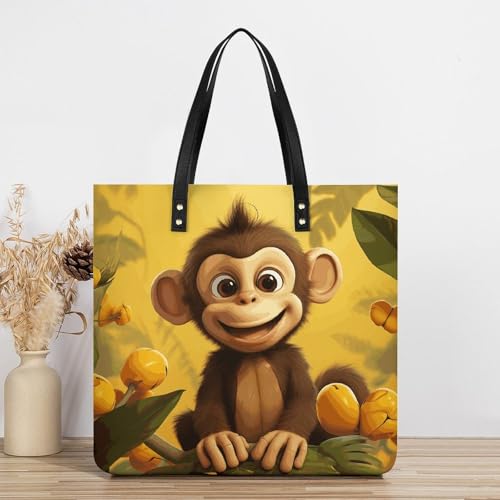 • 【Sweet Surprise】Whether it's for working, shopping trips or festive parties, this Cute Funny Animal Monkey Banana leather tote bag is a great choice. It serves as a wonderful surprise for women, combining practicality, style, and versatility.