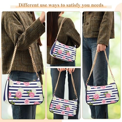 More information about Zipper Evening Clutch Purse Pink Floral White Peonies Blue Clutch Handbag Women Prints Shoulder Purses with Chain Strap