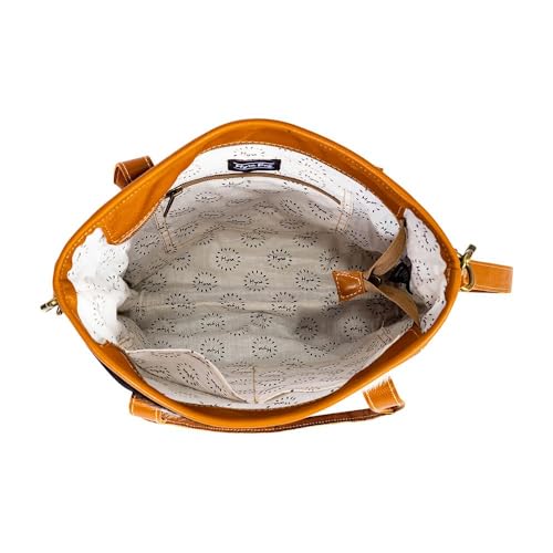 Myra Bag Shoulder Bag for Women - Western Upcycled Hairon Canvas & Leather Handbag Caramel 6