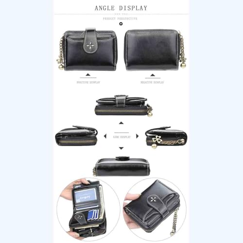 More information about Women's retro wallet small wallet Y2K credit card bag zipper double fold wallet mini leather aesthetic wallet y2k wallet (Black)