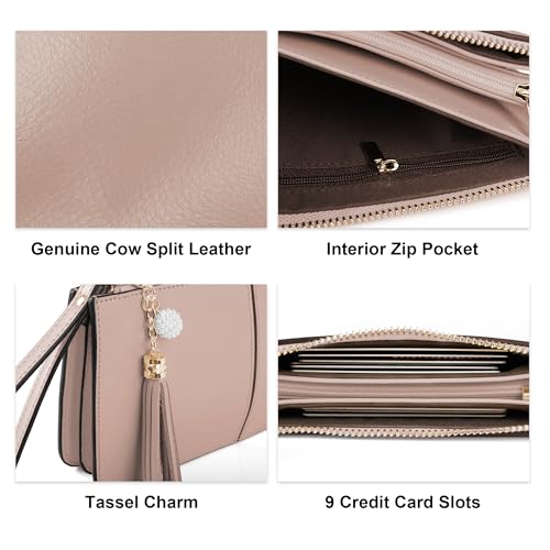 • 1. The new take-everywhere wristlet! Its compact 3-compartment design easily keeps cards, cash, keys and phone organized while on the go! Wear it on your wrist with the attached strap, or keep smaller items organized in backpack and bags. Material: Polished cow split leather with gold-tone metal hardware and a tassel charm. Note: Split leather is leather created from the fibrous part of the hide.