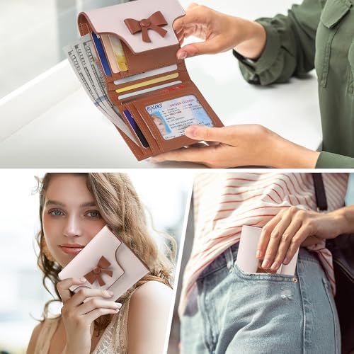 Small Wallet for Women Cute Bowknot RFID Blocking Bifold Leather Credit Card Holder Compact Wallet Lady Girls' Mini Purse with Zipper Pocket 4