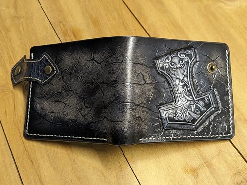 HOT ! Celtic Style, Mjolnir, Thor Hammer, Crow, Raven, Odin, Norse Knots, Viking, Men's 3D Genuine Leather Wallet, Handmade wallet, Carved wallet, Tooled wallet, Bifold wallet, Custom Personalized wallet