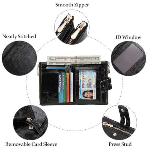 • Large Capacity Women Wallet: With 13 rfid-block credit card slots, 1 ID window, 1 front zipper pocket, 2 side zipper pockets, and 1 full-length bill compartment, this small wallet for women can meet all your daily demands