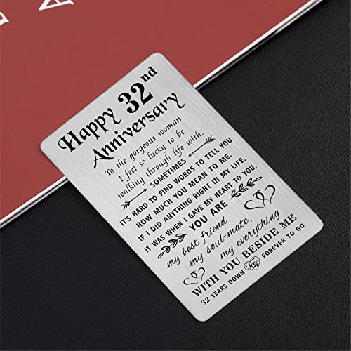 HOT ! TANWIH 32nd Anniversary Card for Her Wife, 32 Year Anniversary Card Gifts for Her Women, 32nd Wedding Anniversary for Wife, Engraved Metal Wallet Cards