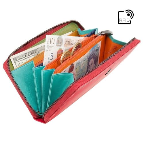 Visconti Large Continental Zip Around Purse in Red Or Black Multi SP79 (Red) 5