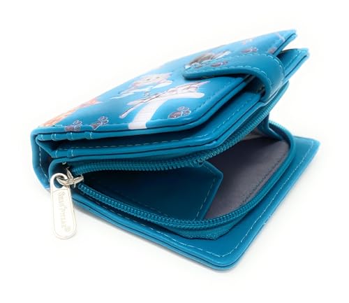 HOT ! Shag Wear Playful Cats Small Wallet for Women and Teen Girls Vegan Faux Leather Teal 4.5"