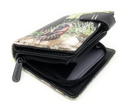 Shag Wear Raccoon Family Small Animal Wallet for Women and Teen Girls Vegan Faux Leather Black 4.5" 4