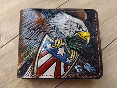 More information about American Flag, Bald Eagle, USA Military, Coat of Arms, US Army Veteran's Day, Father's Day, Patriotic RFID Men's Bifold Wallet, Genuine leather wallet, Biker Wallet, Embossed wallet, Leather Purse, Handmade wallet, Airbrush Art, Custom wallet, Personalized wallet
