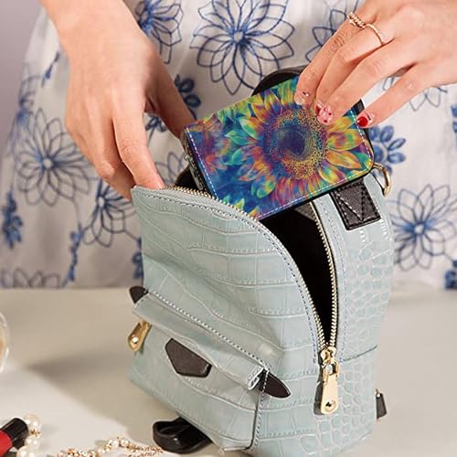 Small Women's Wallet Credit Card Protector RFID Blocking Zip Around Coin Change Purse with Zipper Colorful Sunflower Tie Dye Art 6