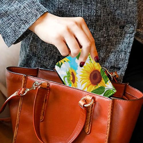 HOT ! Credit Card Holder RFID Blocking Womens Wallet Zip Around Small Zipper Wallet with Coin Pocket Bright Yellow Sunflowers Sky