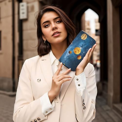HOT ! Milky Way Image Printed Zip Around Long Wallet For Women Men Pu Leather Clutch Purse,Card Holder, Coin Pocket Stylish Travel Leather Billfold For Daily Use & Gifting