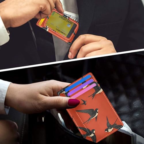 Black Swallow Red Pattern Retro leather small womens wallet slim With Cash Slot RFID Blocking card holders for Men and Women 6