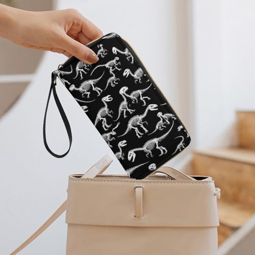 HOT ! Fashion Decor Wallet, Long PU Zipper Wallet, Travel Purse Fashion Design, Huge Storage Capacity Purse With Rope Black And White Dinosaur Skull Skeleton