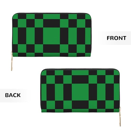 • Material Composition: This Black Green Checkered Print leather wallet is crafted from quality PU leather with a soft inner lining. Designed to offer a sleek and comfortable grip, it combines the classic look of leather wallets for women with a lightweight and eco-conscious build