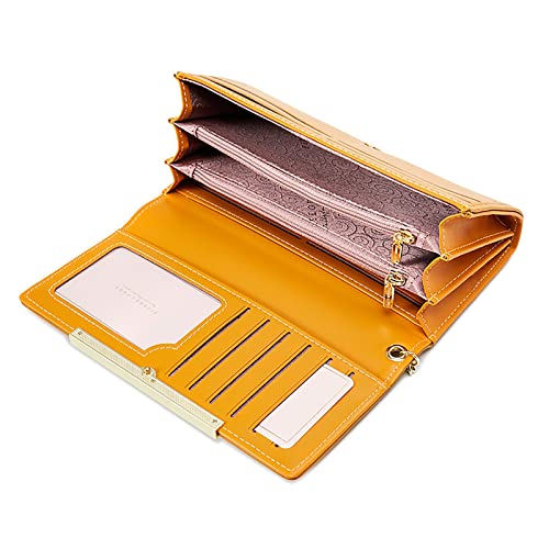 Womens Wallet PU Leather Bifold Wallet Large Capacity Long Purse Credit Card Clutch(Yellow) 3