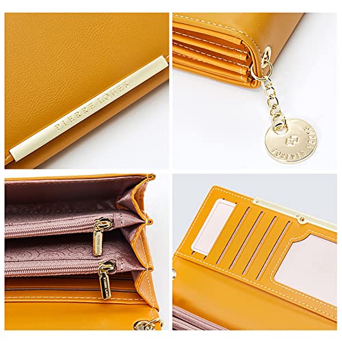 Womens Wallet PU Leather Bifold Wallet Large Capacity Long Purse Credit Card Clutch(Yellow) 4