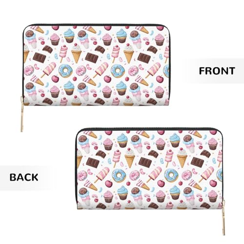 HOT ! Leather Thin Slim Wallets for Women & Men - Chocolate Donut Ice Cream Print Card Wallet Holder with Zipper