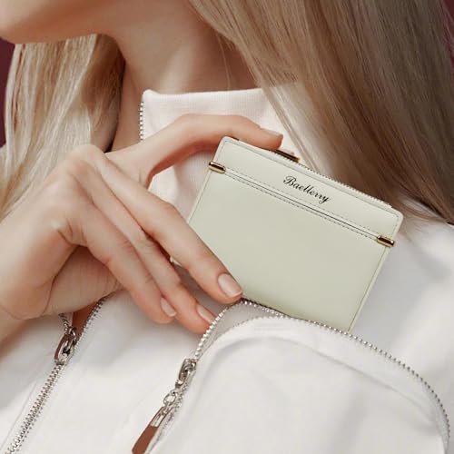 HOT ! FuninCrea Small Wallet for Women, PU Leather Wallet Women Slim Wallet Bifold Zipper coin Pocket Card Holder Wallet with ID Window and Cash Slot, Compact Solid Color Ladies Wallet for Cion Card (White)
