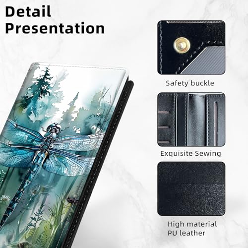 Slim Thin RFID Blocking Credit Card Wallets, Long Wallet for Women, Bifold PU Leather Credit Card Holder Cute Cash Clutch Long Billfold, Button protection, Dragonfly and Forest 4