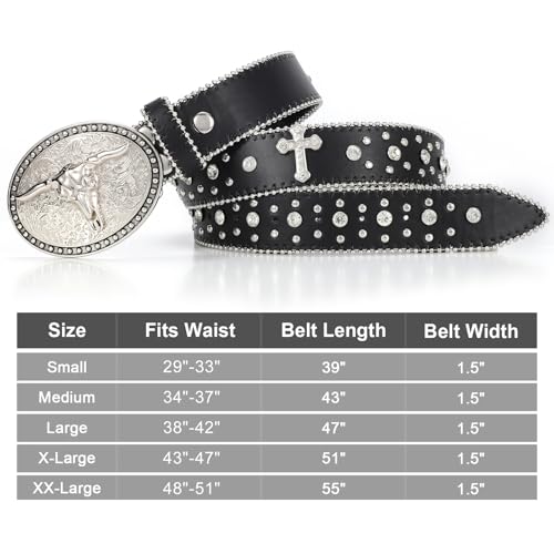 • Multiple size options: Available in four different sizes, this punk cowboy belt fits a wide range of waist sizes. Punk belt is 1.5" wide. Punk rhinestone belt has plenty of holes for precise adjustment, ensuring a comfortable and secure fit for everyone. Punk cowboy western belts for women men.
