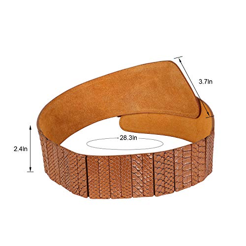 • 🌷This women snake skin leather belt is suitable for the waist size from 25 inch to 42 inch. Belt Length: 87cm(34.2 Inch); 95cm (37.4 inch); 102cm (40.1 inch). Maximum stretch length is: 103cm,112cm,118cm. Width: approx 6.5cm (2.55 Inch), And all the measurements please allow 1-2cm errors.We have black, brown, bright black colors to match all your outfit.
