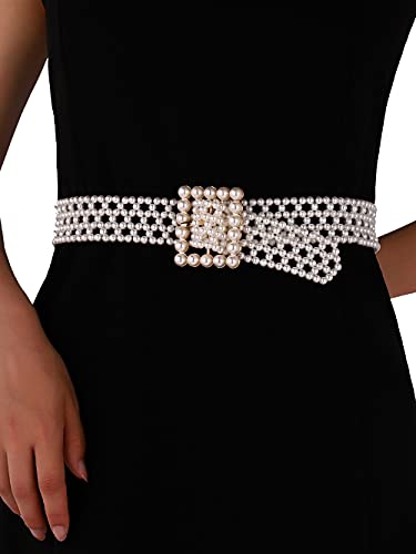 CHIC DIARY Women Bridal Pearl Belt White Beaded Crystal Rhinestone Retro Waist Belt for Wedding Dress 1