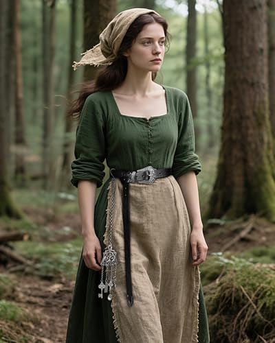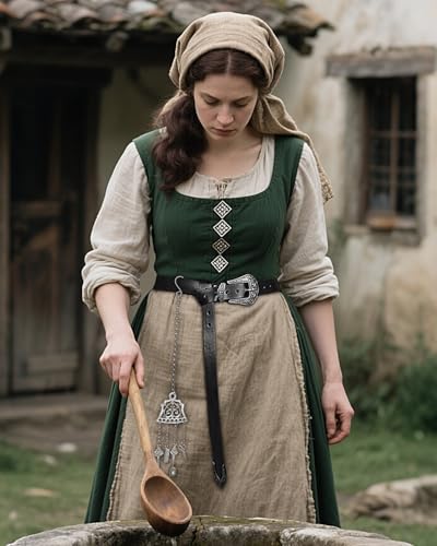 • Effortless Historical Styling - Layer over dresses, tunics or cloaks for instant medieval transformation. The adjustable leather belt fits mose sizes while chatelaine chains drape elegantly.