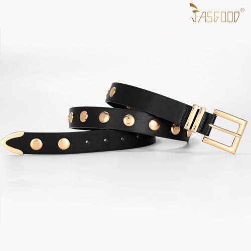 JASGOOD Women Studded Belt Fashion Leather Belt Ladies Punk Belt for Jeans Pants Dresses 2
