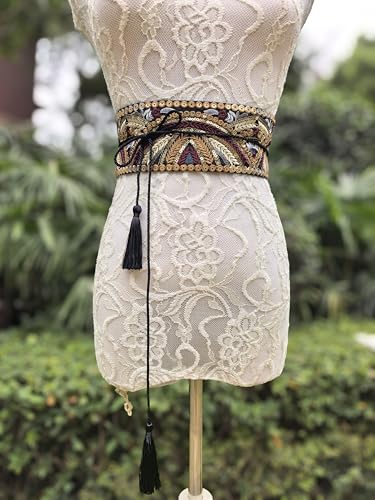 • How to Close the Belt: The belt features cotton straps with tassels at the end that you can tie around your waist to show the tassels on the front or at the back.