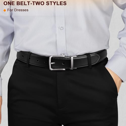Men's Belt,Reversible Belt Adjustable For Gift Men 1.25”-Cut For Fit-2 Sides in 1 Belt(Not 2) 3