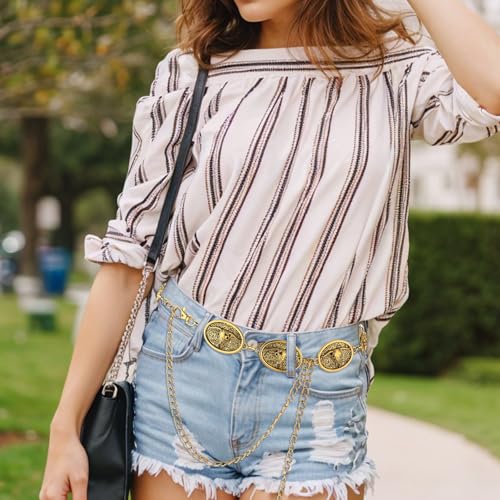 HOT ! Western Metal Concho Belt for Women Oval Cowgirl Chain Belts Waist Chain Link Belt Boho Turquoise Belts for Dresses Jeans Country Concert Outfit