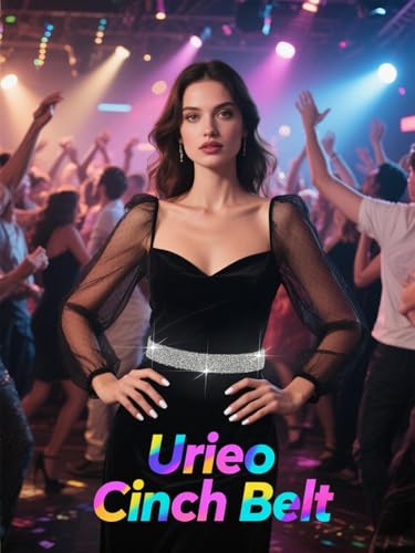 HOT ! Urieo Bling Rhinestone Stretchy Belt Crystal Silver Elastic Belts Wide Formal Dress Waist Cinch Belt for Women