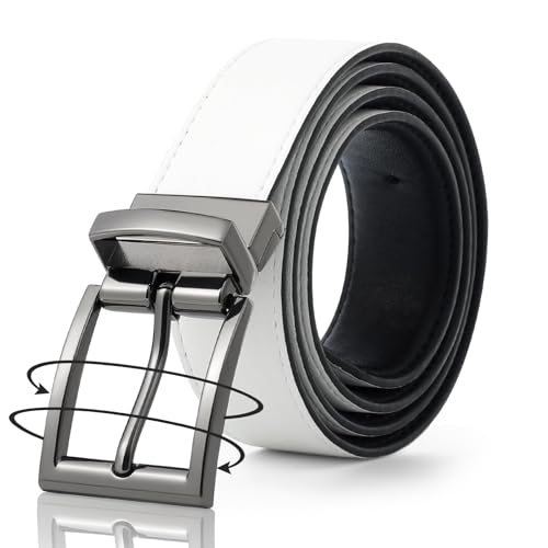 HOT ! Womens Reversible Leather Belt for Ladies - Two-in-One Belt for Dress Women Mens Belt with Rotated Gun Color Buckle