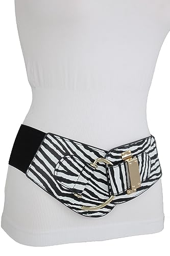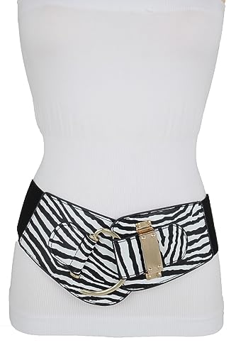 HOT ! TrendyFashionJewelry Women Black White Zebra Belt - Hip High Waist Gold Metal Hook Buckle Safari S M