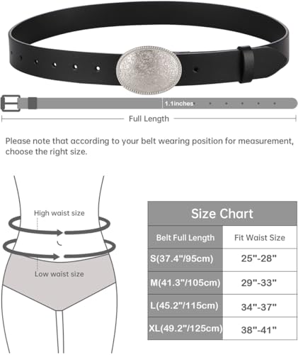 ALAIX Women's Black Leather Belt with Silver/Gold Buckle Western Jeans Y2K Punk Pants Belt Black and Silver Belts for Women 7