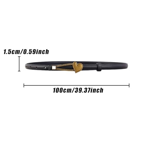 HOT ! Ladies Leather Belt with Heart Chain Spaghetti Belt with Adjustable Women's Belt for Jeans, Pants, Dresses