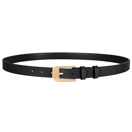 XZQTIVE Women's Thin Leather Belts Ladies Skinny Black Belts for Jeans Dress Pants Trendy Waist Belt with Gold Buckle 5