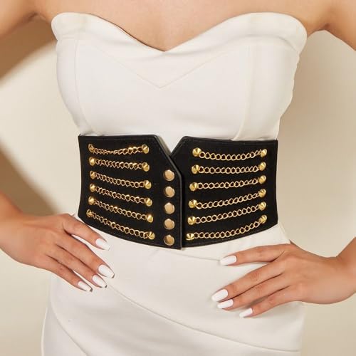 More information about Chain Rivet Waistband Elastic Buckle Retro Clothing Supplies Dress Belt Elegant Wide Waist Belt Women(color 3)