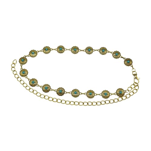 Women Metal Chain Waistband Ethnic Fashion Belt Waist Hip Turquoise Blue Flower Charms 1