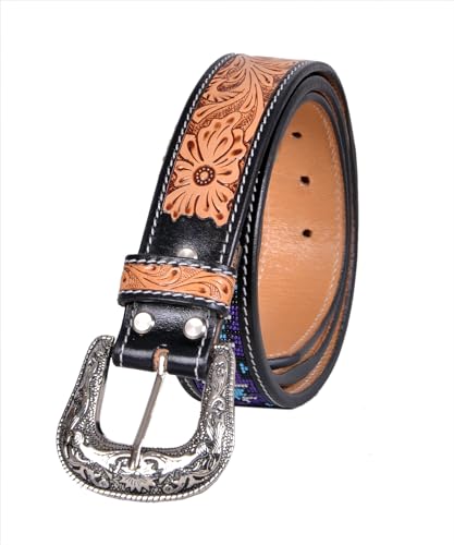 Western Tooled Leather Beaded Belt For Men and Women 30IS105 3