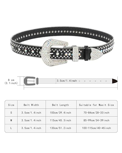 Rhinestone Belt for Men Women, Sparkly Rivet Cowboy Diamond Bling Belts for Jeans, Black 3