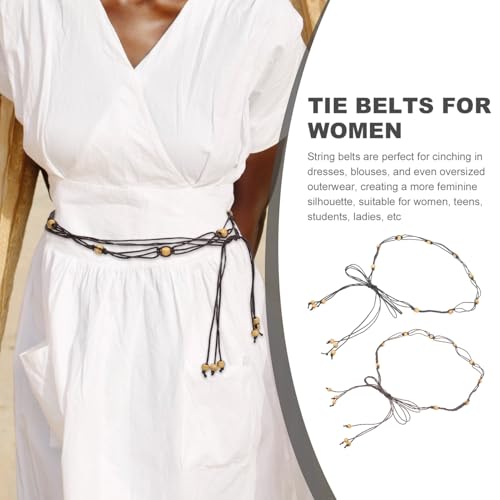 2Pcs Woven Tassel Waist Belts for Women Rope Belt for Dress Jeans and Evening Gowns Fashionable Waist Tie with Beads 3