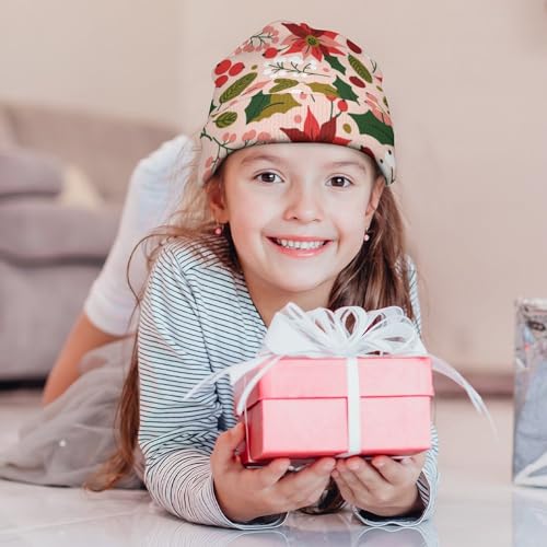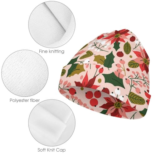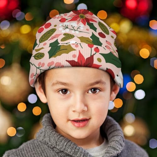 Blooming Red Christmas Flower Poinsettia Pattern Kids Beanie Hat for for Girls Boys Children Cap Winter Knitted Chemo Cancer Headwear Accessories Gifts Decoration 1