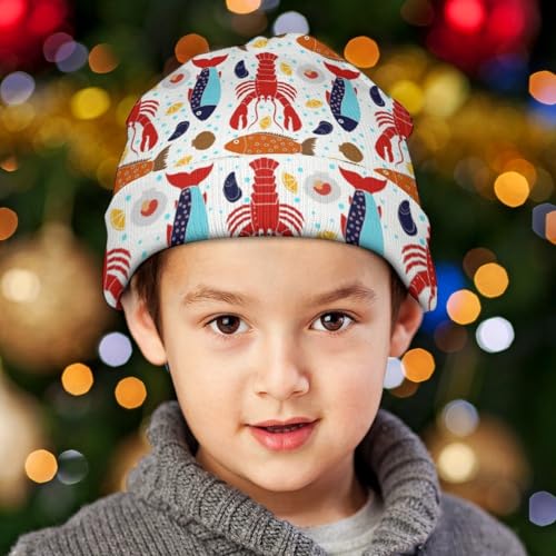 Animal Red Lobster and Lovely Fish Print Kids Beanie Hat for for Girls Boys Children Cap Winter Knitted Chemo Cancer Headwear Accessories Gifts Decoration 1