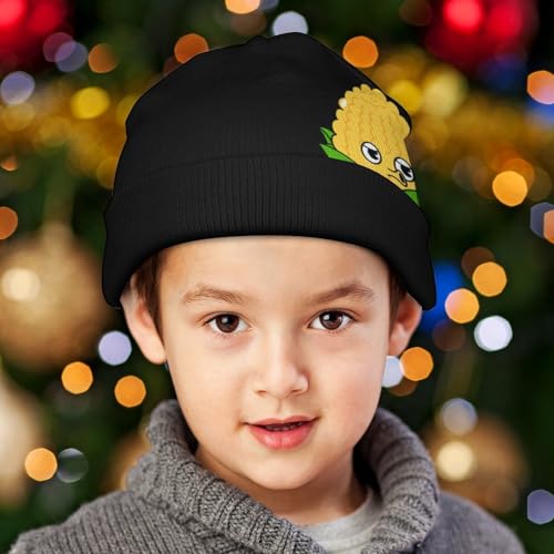 Cute and Funny Corn Pattern Kids Beanie Hat for for Girls Boys Children Cap Winter Knitted Chemo Cancer Headwear Accessories Gifts Decoration Black 1