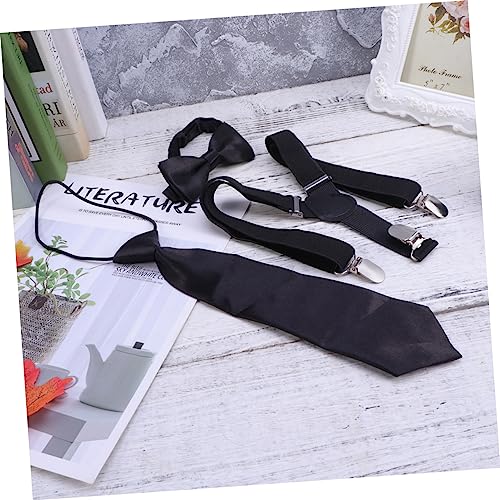 3Pcs Suspenders Elastic Braces with Clip Buckle Solid Color Necktie for Boys Formal Occasions Everyday Wear 1