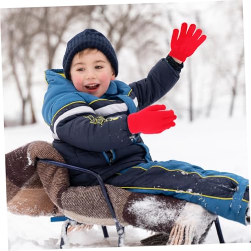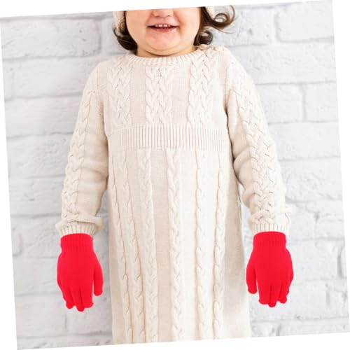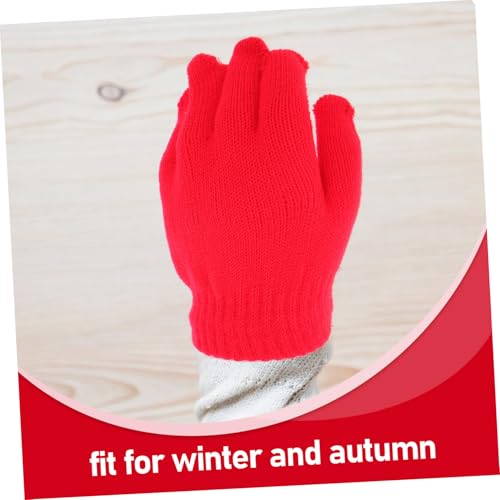 Warm Full Finger Gloves Knitted Solid Color for Autumn Winter Fits Ages for and School Bus Wait Red 7