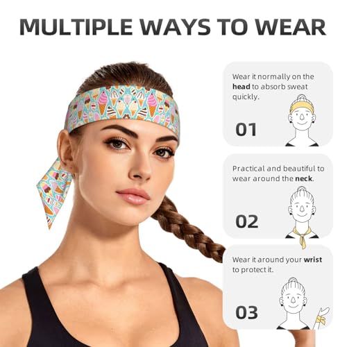 Boys Girls Sports Sweatbands, Multi Style Elastic Hair Band for Yoga Workout Shower, Cool Sunmmer Colorful Ice Cream Art Headwear Head Accessories 2