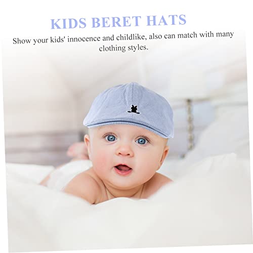 Striated Beret Hat for Adorable Rabbit Design Lightweight Washable Beret for Festivals Daily Wear Boys Blue 6